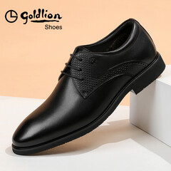 ¥599.00金利来(goldlion)男鞋正装商务休闲鞋舒适轻质透气时尚皮鞋58083057101A-黑-41-码