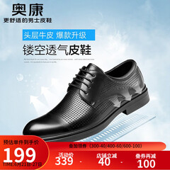 ¥339.00奥康(Aokang)男鞋牛皮皮鞋男士商务正装圆头系带低帮鞋子 黑色夏季打孔款 42