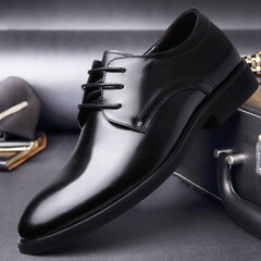 ¥199.00芭步仕男鞋2023新款男士商务正装皮鞋英伦风新郎婚鞋男式单鞋 黑色 41码【皮鞋尺码】