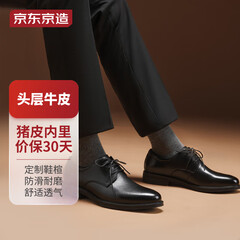 ¥239.00京东京造【头层牛皮更透气】皮鞋男正装鞋光面系带真皮婚鞋男 黑色42