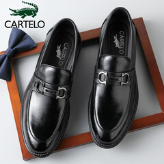 ¥198.00卡帝乐鳄鱼(CARTELO)增高商务正装套脚牛皮男士潮流内增高中老年爸爸皮鞋2053 增高 40