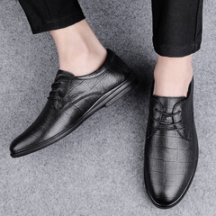 ¥288.00速狐(SUHU)头层真牛皮轻奢男士皮鞋男时尚英伦风休闲皮鞋男商务正装鞋鞋子男 黑色 42标准皮鞋码