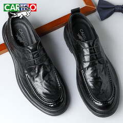 ¥368.00卡帝乐鳄鱼(CARTELO)头层羊皮男鞋商务厚底休闲皮鞋男手抓纹防皱男士皮鞋9710 黑色 44