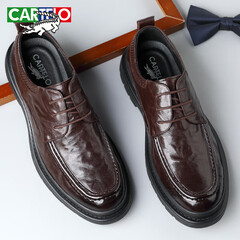 ¥368.00卡帝乐鳄鱼(CARTELO)头层羊皮男鞋商务厚底休闲皮鞋男手抓纹防皱男士皮鞋9710 棕色 42