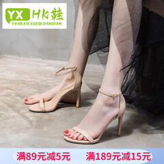 ¥50.00YXHK 一字带凉鞋女2023夏新款气质名媛黑色小众设计感细跟露趾高跟鞋 杏色[10cm] 39