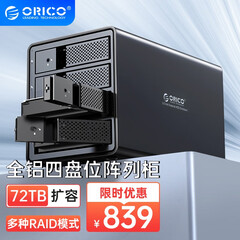 ¥899.00奥睿科(ORICO) 硬盘盒硬盘柜3.5英寸USB3.0 RAID磁盘柜机械硬盘移动多盘位存储盒子 四盘位-全铝阵列柜【带RAID功能|72TB扩容】 USB3.0接口-黑色