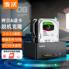 ¥259.00麦沃(MAIWO)K3082CR 硬盘读取盒底座 拷贝机 3.5/2.5英寸sata串口硬盘支持CF/SD读卡器U盘读写快充口 黑色