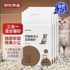 ¥79.90京东京造 3合1混合猫砂2.8kgx4包箱装钙基膨润土豆腐猫砂除臭低尘结团吸水