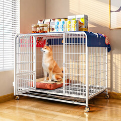 ¥299.00AITAPET【升级全管加强 】狗笼中型犬大型犬狗笼子宠物狗狗笼子金毛用品 升级置物架加粗加密 白色 110*75*90CM 建议100斤内