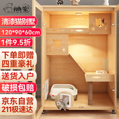 ¥839.00腆宠 猫笼别墅 猫柜子猫别墅实木清漆猫笼子大号家用豪华猫窝猫舍猫屋