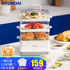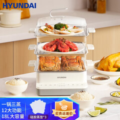 ¥169.00HYUNDAI韩国电蒸锅 多功能家用三层18L大容量蒸蛋器蒸汽锅电蒸笼蒸箱早餐机可视电蒸锅 18L不锈钢蒸盘款