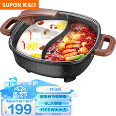 ¥221.00苏泊尔(SUPOR)电火锅 鸳鸯锅 火锅专用锅电煮锅电锅火锅锅家用多功能电热锅6L麦饭石色多用途锅H3232FK609Y