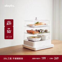 ¥199.00olayks电蒸锅家用多功能电热锅电煮锅蒸蛋器多用途锅电蒸箱不锈钢多层电蒸笼蒸汽锅大容量三层20升
