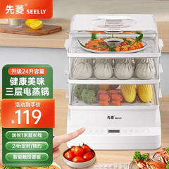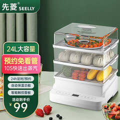 ¥119.00先菱 德国SEELLY电蒸锅电煮锅电火锅多功能锅可定时分体式24升大容量蒸笼预约智能保温早餐机 24L大容量【24H预约+延长线】 3层蒸笼