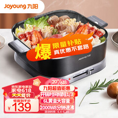 ¥139.00九阳(Joyoung)6L大容量 2000W大火力超快家用一体式 火锅专用锅 电火锅 火锅锅 电炒锅 多功能锅不粘涮烤锅G110