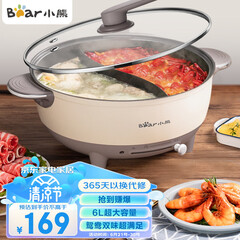 ¥169.00小熊(Bear)鸳鸯锅 电火锅 多用途锅 电煮锅 多功能锅一体式家用电热锅料理涮肉锅火锅锅具 DHG-B60R6 6L