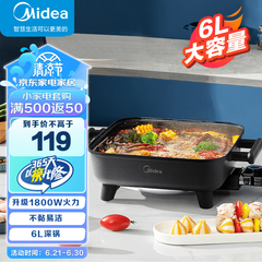 ¥259.00美的(Midea)电火锅多功能用途锅专用锅电锅家用大容量电炒锅电煮炖锅一锅多用电煮锅 6L丨加深内胆火锅丨HGE3010