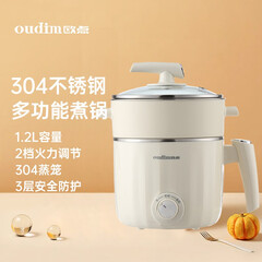 ¥129.00欧点(oudim)多功能电煮锅304不锈钢电火锅锅家用电热锅宿舍煮面锅学生锅小电锅304钢蒸笼电蒸锅 1.2L|米黄|304不锈钢|蒸笼