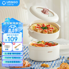 ¥109.00七彩叮当(URINGO)电煮锅宿舍小电锅 电热锅泡面电火锅 电炒锅多功能锅 蒸煮一体智能可预约 2L配蒸笼SD01Z