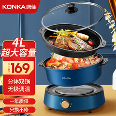 ¥169.00康佳(KONKA) 电火锅多功能锅 分体式料理锅大容量网红锅烤肉锅电炒锅家用电烧烤炉涮烤一体锅电热锅 4L分体【烤肉+火锅】