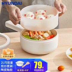 ¥79.00HYUNDAI韩国电煮锅 多功能电炒锅煮面家用煎涮电热锅一体电火锅宿舍锅泡面锅学生单人小电锅 2L机械款【配木铲+食品级蒸笼】