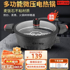 ¥184.00可亓 电炒锅多功能家用微压锅煎炒一体麦饭石不粘锅7L大容量电煮锅加厚加深电热锅轻油少烟全身可水洗 多功能微压锅7L【30cm】带蒸片硅胶铲菜刀