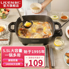 ¥119.00利仁(Liven)多功能电热锅 电火锅 家用大容量火锅 电炒锅 电煮锅 电锅一体锅 宿舍煮面锅电煎锅多用锅 【5.5L多用锅】旋钮调温+1400W