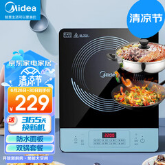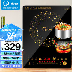 ¥329.00美的(Midea)电磁炉 火锅炉匀火 智能定时 十档火力 C21-WT2118(标配欧式汤锅+炒锅)