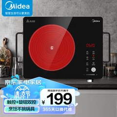 ¥219.00美的(Midea)电磁炉 电陶炉 家用煮茶火锅旋控2200W大火力电磁灶双环控火 智能定时4D防水 H22-HST2208