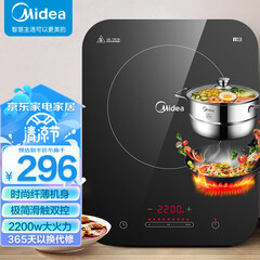 ¥316.00美的(Midea)电磁炉 家用大功率 2200W 恒匀火技术 智能断电 微晶面板 C22-WH2237(配汤蒸锅+渗氮炒锅)