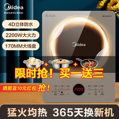 ¥259.00美的(Midea)电磁炉 电陶炉 家用煮茶火锅旋控2200W大火力电磁灶环形控火 智能定时4D防水MC-HW22W3-003