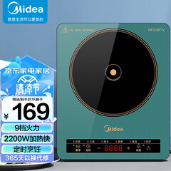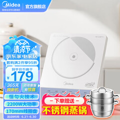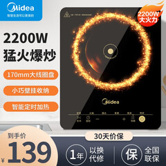 ¥169.00美的(Midea)电磁炉 家用2200W大功率 电磁灶 恒匀火 智能断电 旋控调节火力 C22-RX22H