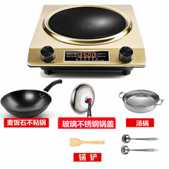 ¥366.00海澳德凹面电磁炉家用一体多功能火锅炉节能防水大功率电磁灶定制海澳德 金色3500W【麦饭石不粘锅+汤锅+锅盖】