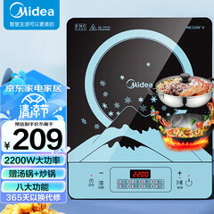 ¥329.00美的(Midea)电磁炉 家用大功率 匀火加热 火锅炉 九档火力 电磁灶 智能定时C22-WT2218 (配汤锅+炒锅)