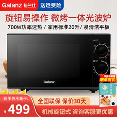 ¥649.00格兰仕(Galanz)微波炉烤箱一体机 20升家用700W功率 小型迷你平板式易清洁 机械旋钮式操作老人可用 光波炉ZSW0 黑色 G70F20N3P-ZS(W0)