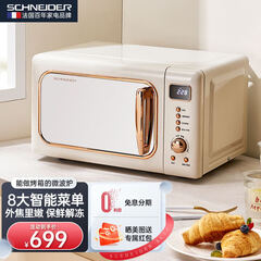 ¥999.00SCHNEIDER 法国施耐德 微波炉家用复古微波炉20L旋钮简易操作微烤箱一体机 欧式复古