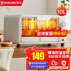 ¥199.00樱花(SAKURA)电烤箱 10L家用大容量多功能迷你小烤箱 小巧不占地 800W大功率 上下发热管 精准控时控温 SCS-K10AK05