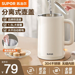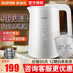 ¥229.00苏泊尔(SUPOR) 电热水壶家用烧水壶双层防烫保温开水壶全钢无缝电子调温实时显温