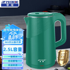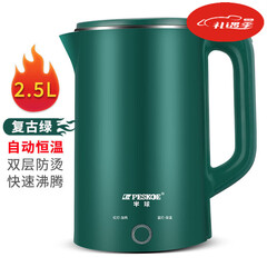 ¥38.90半球(PESKOE)半球(PESKOE) 电热水壶大容量便携式热水壶家用电水壶不锈钢材质双层防烫烧水壶 2.5升双层防烫复古绿(自动断电)【304不锈钢】