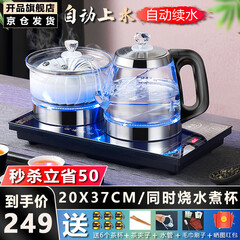 ¥289.00开品 全自动底部上水感应续水电热水壶 家用办公茶具套装烧水消毒茶台 可嵌入式玻璃烧水壶茶桌一体 晶耀黑【嵌入尺寸20X37CM 烧水煮杯】桶装水款