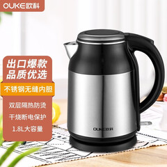 ¥119.00欧科(OUKE)电热水壶双层防烫食品级不锈钢自动断电防干烧大容量电水壶开水壶烧水壶 银黑