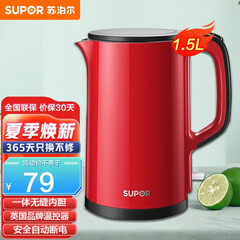 ¥89.00苏泊尔(SUPOR) 电水壶烧水壶家用 304不锈钢自动断电无缝内胆双层保温双层防烫STRIX温控器 SW-15J623 1.5L红色