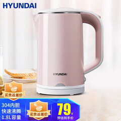 ¥99.00HYUNDAI韩国热水壶 家用烧水壶双层防烫保温304不锈钢保温功能大容量恒温电热水壶 1.8L粉色【带保温款】