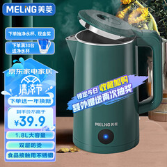 ¥39.80美菱(MeiLing) 电热水壶烧水壶不锈钢保温壶自动断电防干烧家用电水壶 1.8L丨加厚丨翡翠绿丨无保温