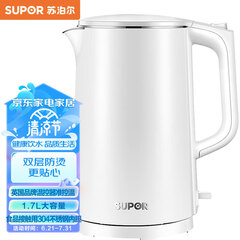 ¥69.00苏泊尔(SUPOR)电水壶 双层防烫烧水壶热水壶 全钢无缝内胆电热水壶SW-17J418 1.7L大容量