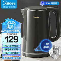 ¥129.00美的(Midea)电热水壶烧水壶恒温水壶一键保温恒温烧水壶净甜开水壶316L不锈钢智能自动断电热水壶SHE1521