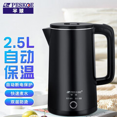 ¥39.90半球 (PESKOE)烧水壶热水壶电热水壶自动断电保温大容量家用快速壶开水壶双层防烫恒温水壶电热水壶 2.5升亮黑(加厚保温款)