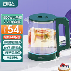 ¥54.90南极人烧水壶热水壶玻璃电水壶2.2L大容量智能恒温保温家用电热水壶高硼硅玻璃304不锈钢底盘 【保温功能】绿色+2.2L