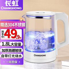 ¥49.63长虹(CHANGHONG) 电水壶1.8L大容量高硼硅玻璃烧水壶304不锈钢热水壶家用电热水壶暖水壶烧水壶水壶开水壶节日礼物 1.8L大容量-304不锈钢发热盘-经典(简约白)