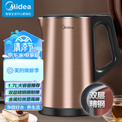 ¥109.00美的(Midea)电水壶热水壶烧水壶1.7L大容量双层防烫304不锈钢无缝一体净甜自动断电开水壶SH17E312